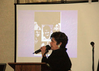 Anna Flowers speaks at a luncheon