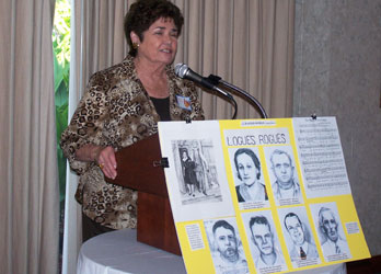 Anna talks about her book, "Wanton Woman" and presents a chart of principle characters at the Junior League luncheon at Eau Gallie Yacht Club.