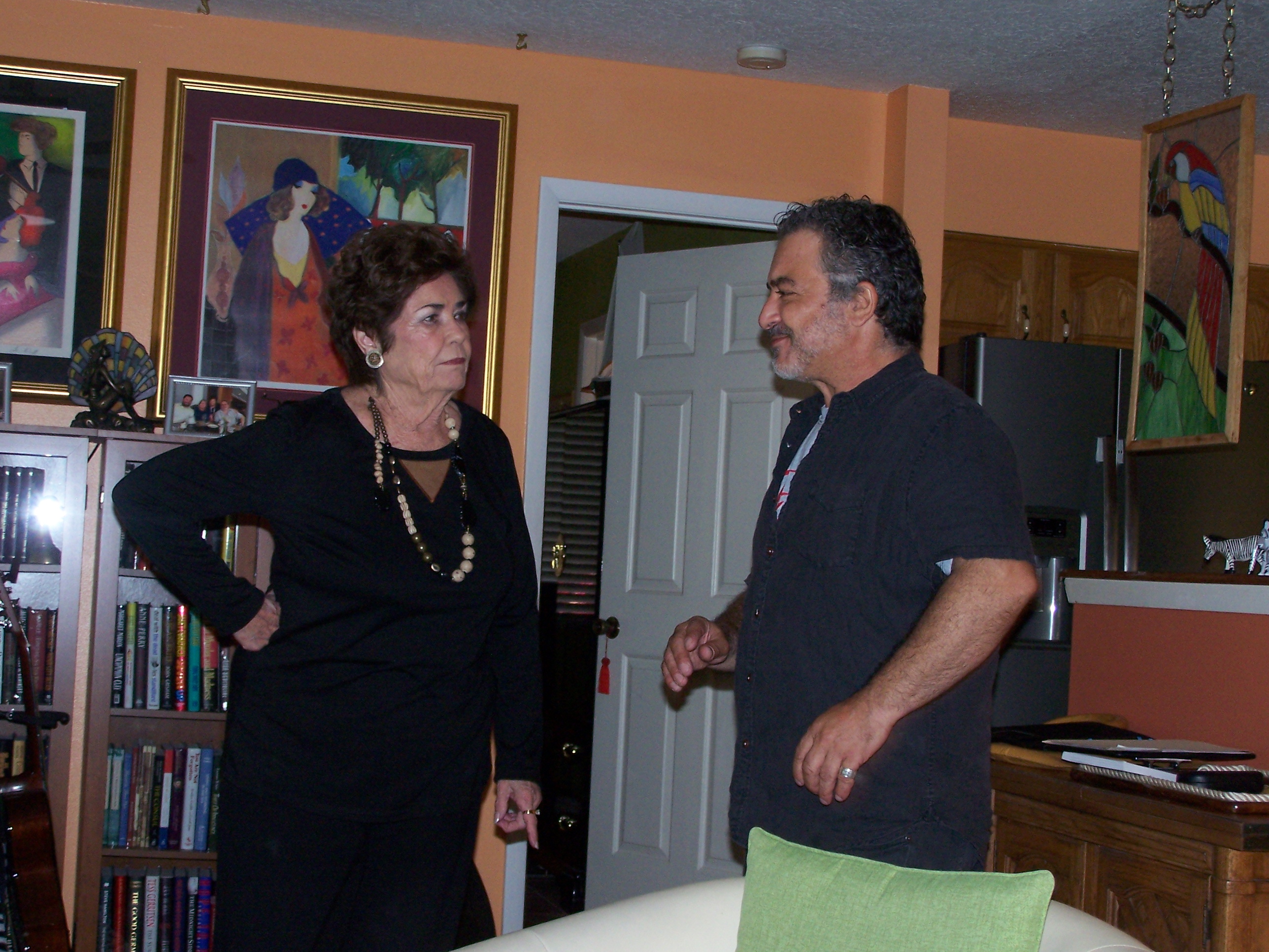 From her Viera, FL home, Anna receives direction from TV series producer Andy Papadopoules before her int erview on camera.